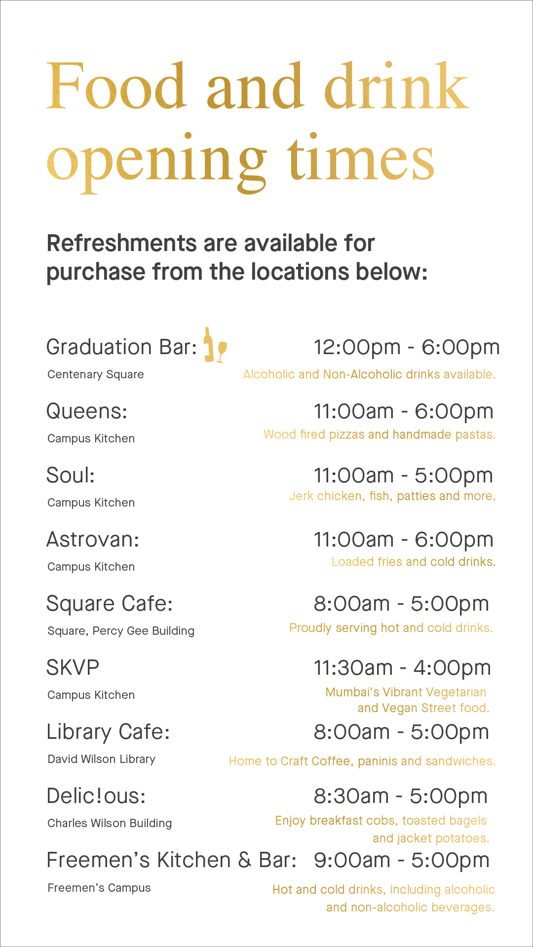 Graduation Opening times